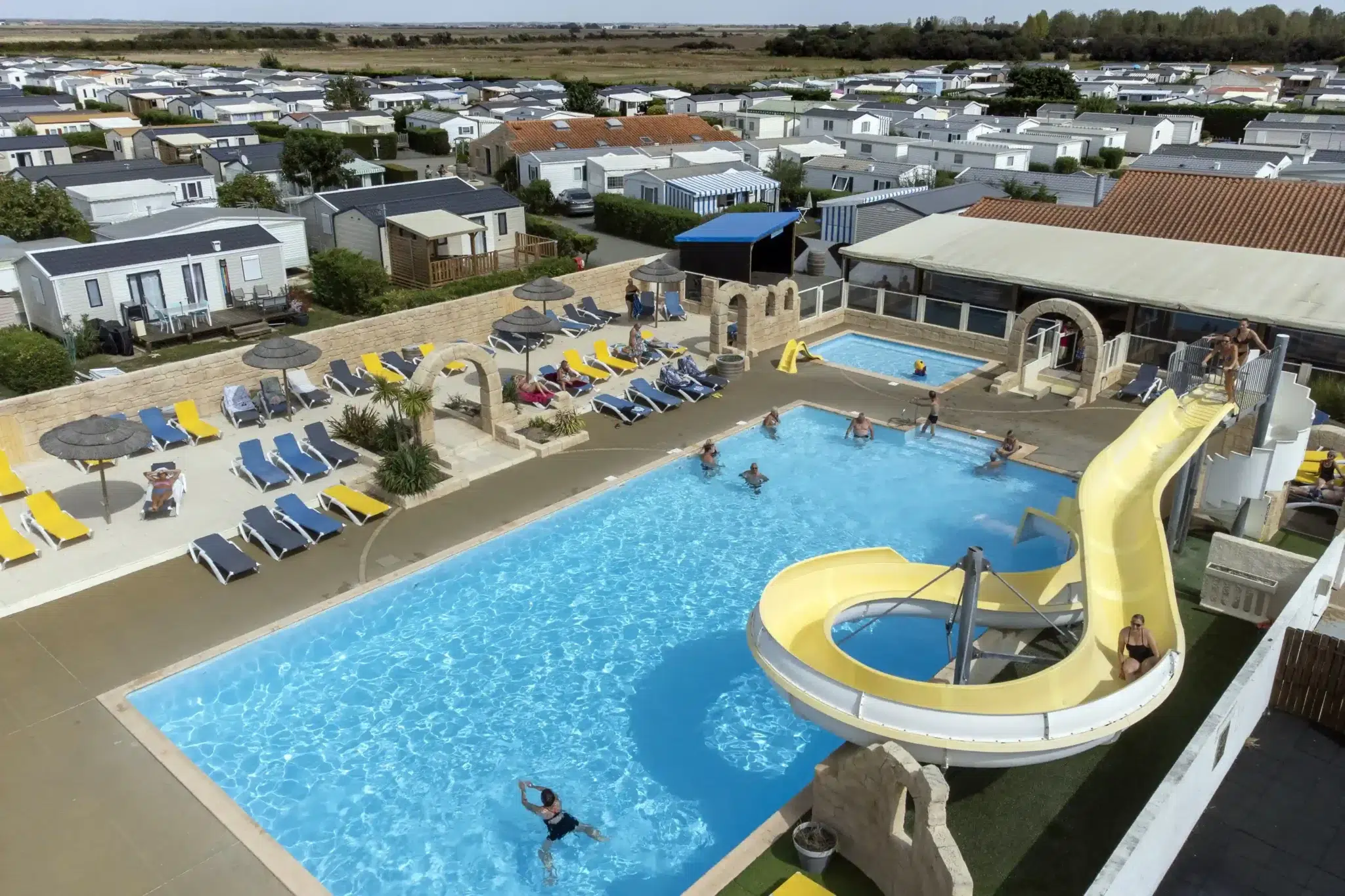 Pour une détente absolue, notre camping avec piscine chauffée à la Tranche-sur-Mer vous offre le plaisir d’une baignade parfaite. Entre la pataugeoire pour vos petits et le toboggan aquatique pour les plus grands, chacun trouvera son bonheur.